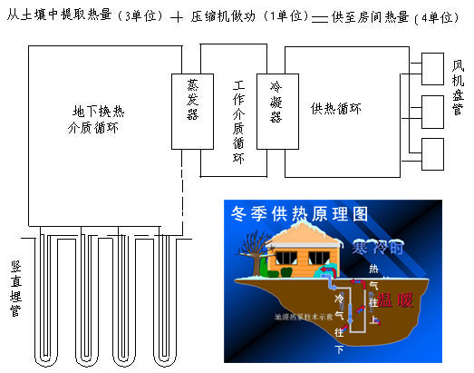 地源熱泵:地源熱泵(也稱地熱泵)是利用地下常溫土壤和地下水相對穩(wěn)定的特性,通過深埋于建筑物周圍的管路系統(tǒng)或地下水,采用熱泵原理,通過少量的高位電能輸入,實現(xiàn)低位熱能向高位熱能轉(zhuǎn)移與建筑物完成熱交換的一種技術(shù)。地源熱泵是一種利用地下淺層地熱資源既能供熱又能制冷的高效節(jié)能環(huán)保型空調(diào)系統(tǒng)。地源熱泵通過輸入少量的高品位能源(電能),即可實現(xiàn)能量從低溫熱源向高溫熱源的轉(zhuǎn)移。在冬季,把土壤中的熱量“取”出來,提高溫度后供給室內(nèi)用于采暖;在夏季,把室內(nèi)的熱量“取”出來釋放到土壤中去,并且常年能保證地下溫度的均衡