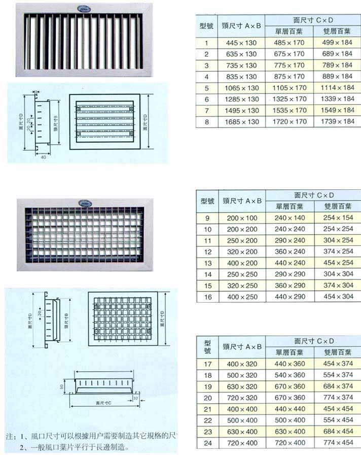 ------------------------------ 單、雙層百葉風(fēng)口 -------------------------↑返回頂部