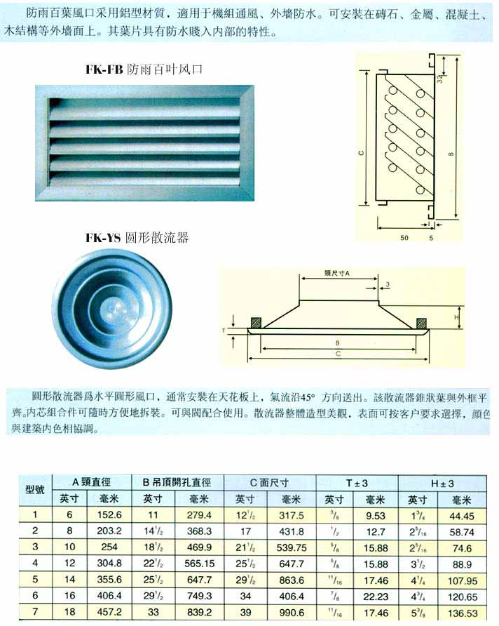 ----------- FK-FB防雨百葉風(fēng)口,F(xiàn)K-YS圓型散流器 -------------↑返回頂部